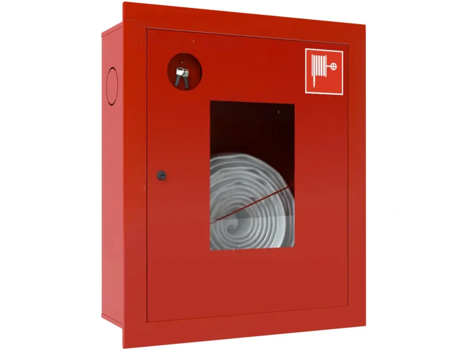 Специфика. Шкаф рассчитан строго на рукав 19 мм (бытовой). Обычный пожарный рукав 51 мм в него не поместится.